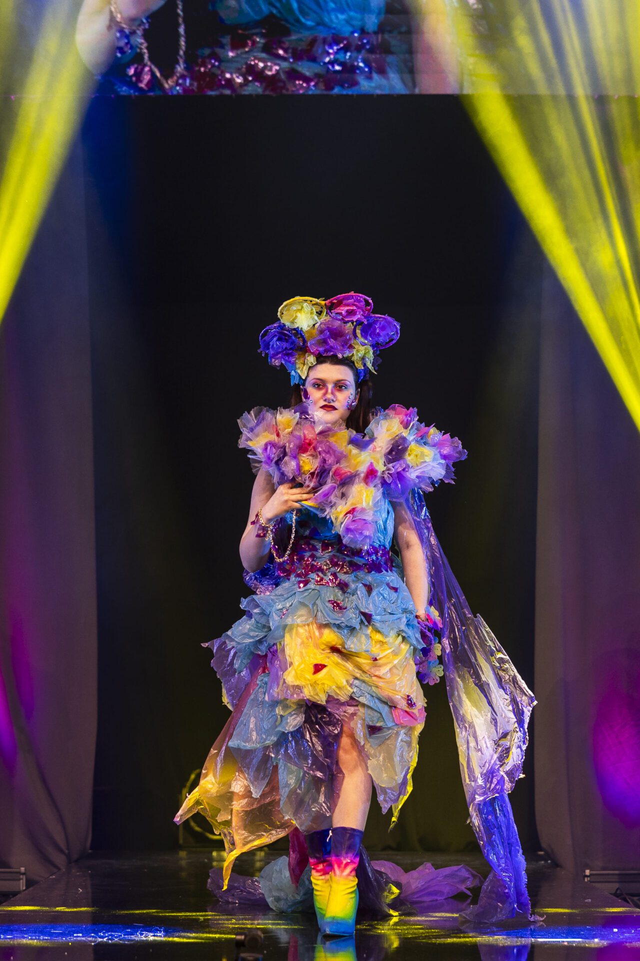 Inspired by the uplifting power of color, ‘The Colors of Hope’ reflects the Agenda 2030 goal of improving health and happiness for everyone. This design showcases the important connection between movement, emotional well-being, and sustainability. Drawing inspiration from the flowing shape of a badminton shuttlecock, it uses vibrant, repurposed materials to symbolize the harmony and energy that arise when creativity, balance, and responsible choices come together.